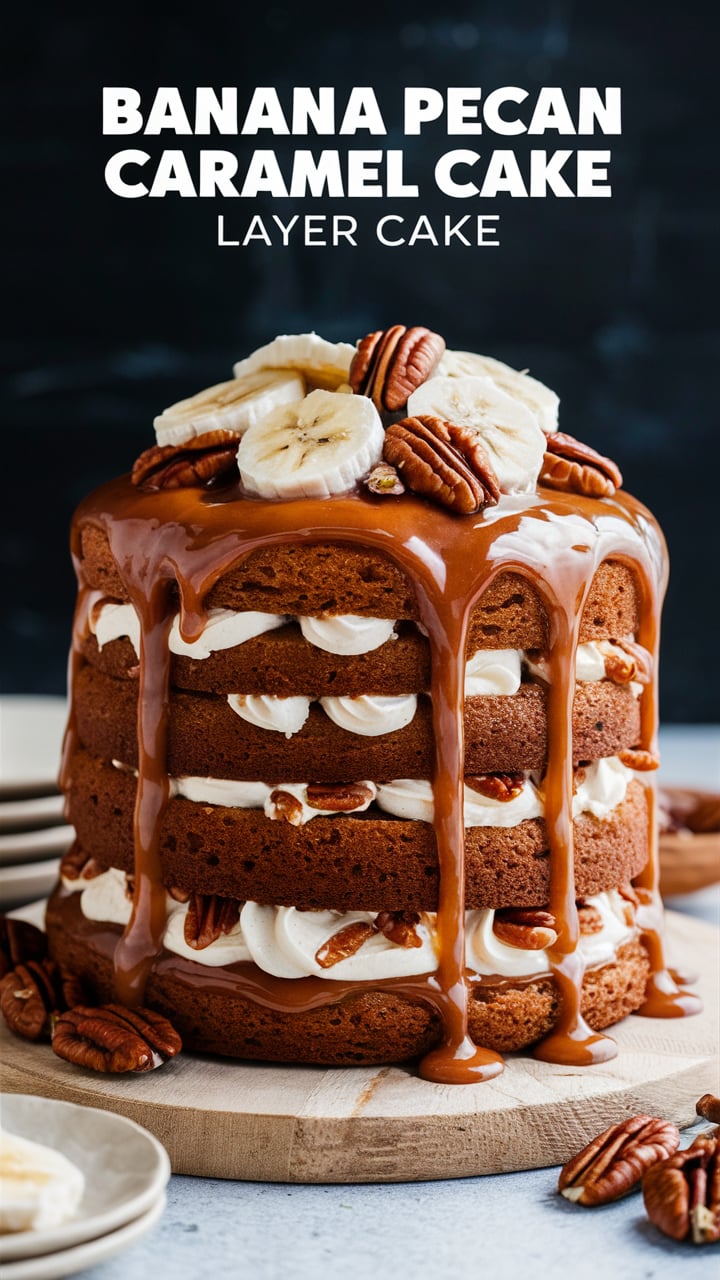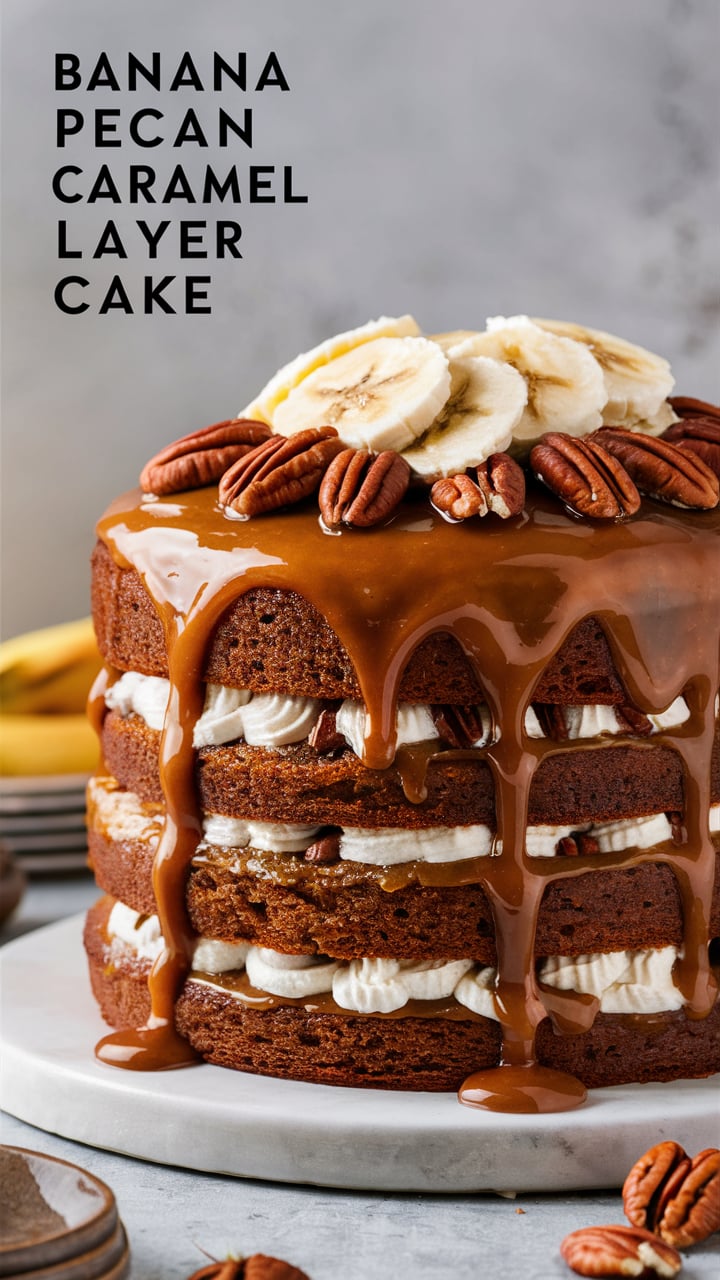 What makes the Banana Pecan Caramel Layer Cake exceptional is its balance of textures and flavors: