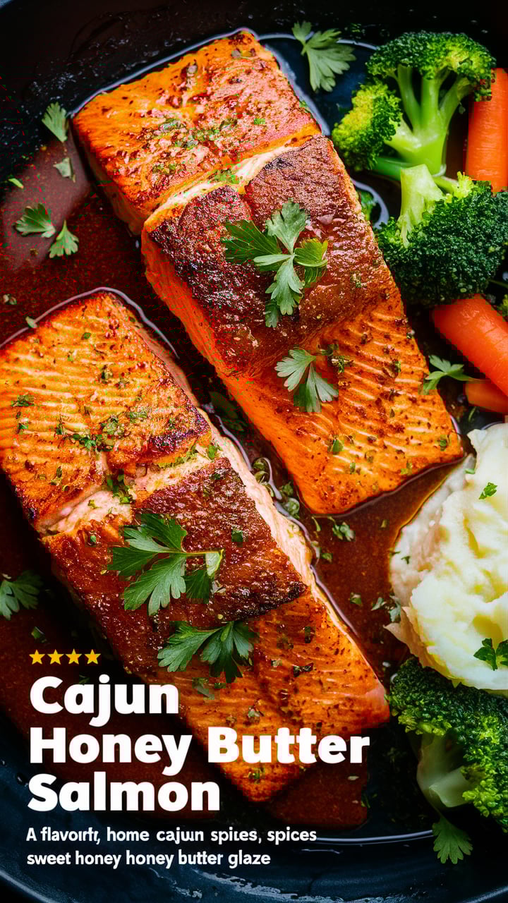 Salmon is one of the most beloved fish varieties worldwide — prized for its rich flavor, tender texture, and exceptional health benefits. When paired with the bold, smoky, and slightly spicy notes of Cajun seasoning combined with the luscious sweetness of honey and butter, it creates a culinary masterpiece that’s easy to prepare and impossible to resist.