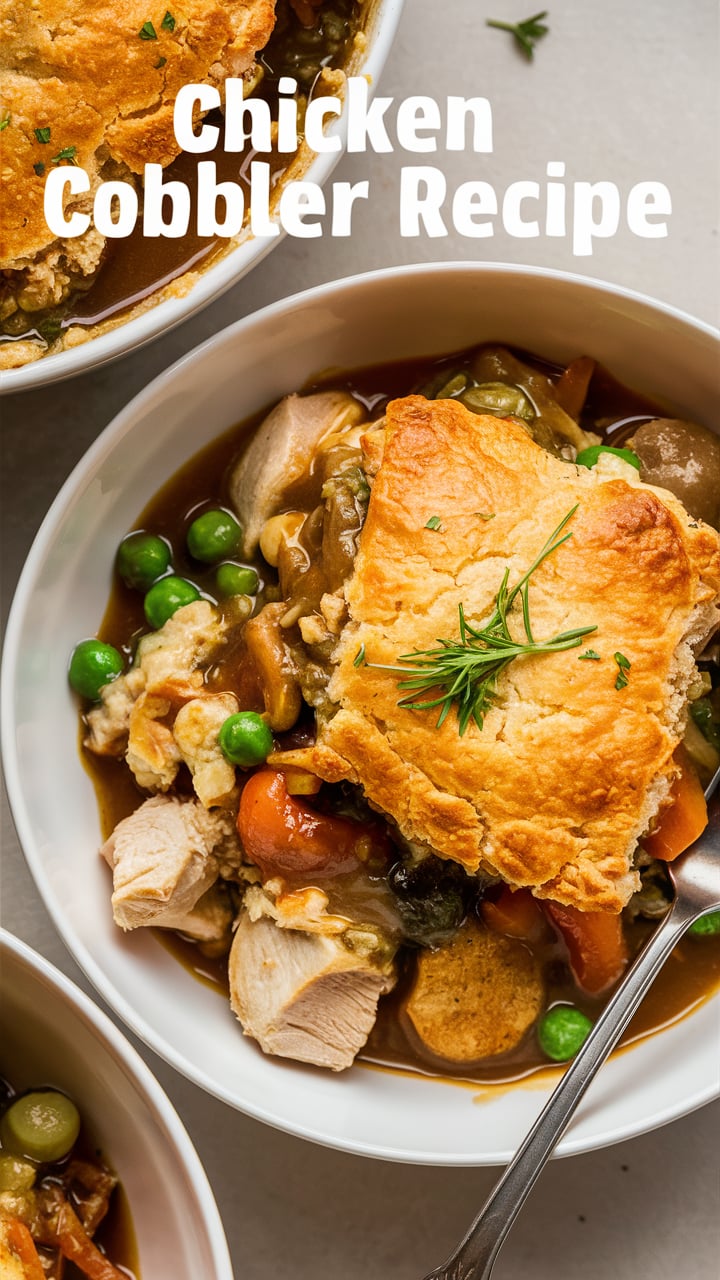 Chicken cobbler can be made with rotisserie chicken, leftover roasted chicken, or even turkey. You can swap vegetables, adjust seasonings, and experiment with cheeses.